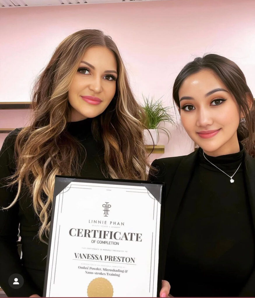 Born in Santa Ana, California, Vanessa Preston Reyes has always been drawn to the world of beauty and artistry. As a passionate PMU artist, she specializes in creating natural, flawless eyebrows that enhance her clients’ confidence and unique features. With an eye for detail and a dedication to her craft, Vanessa transforms brows into beautiful works of art, making every client feel radiant and empowered.